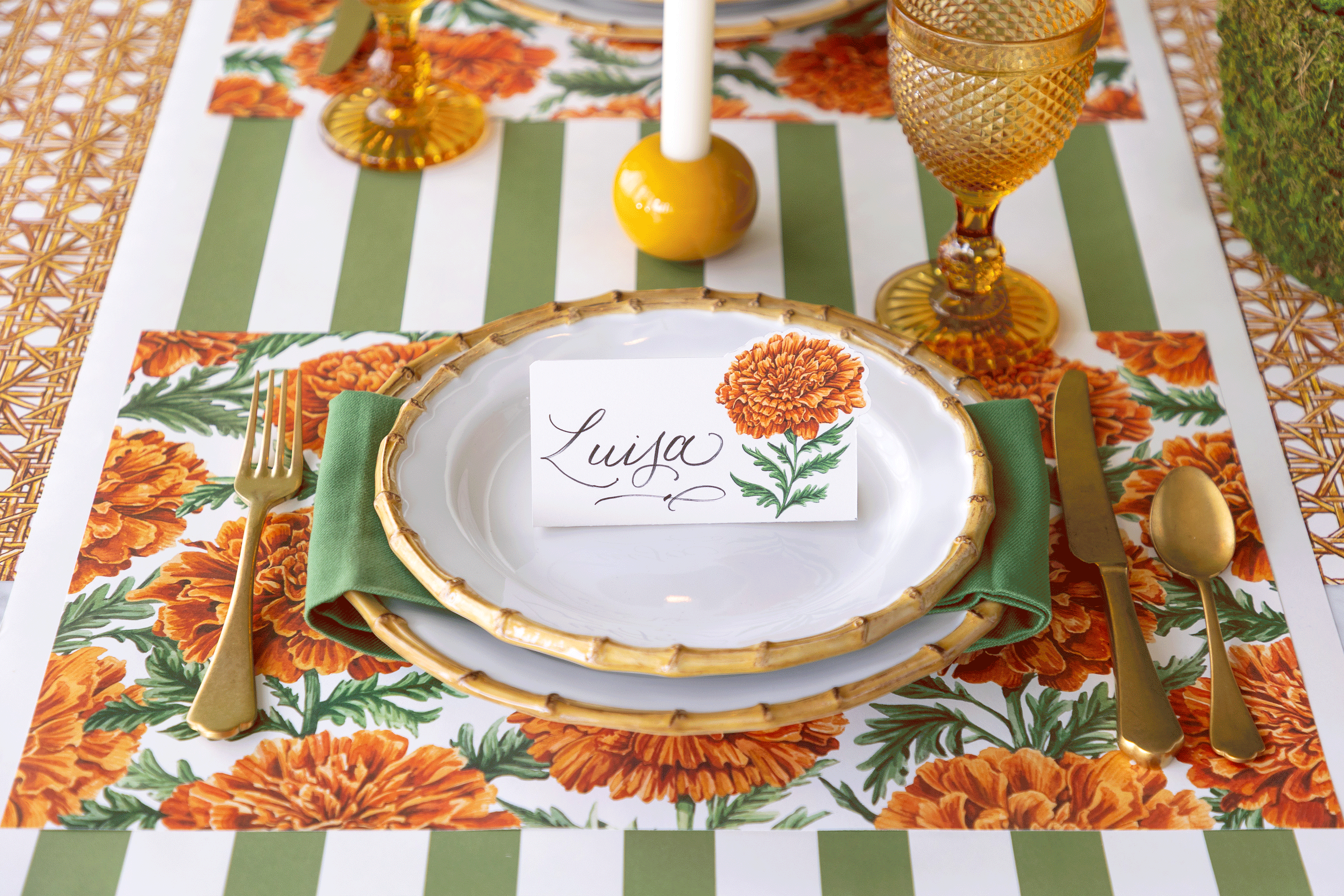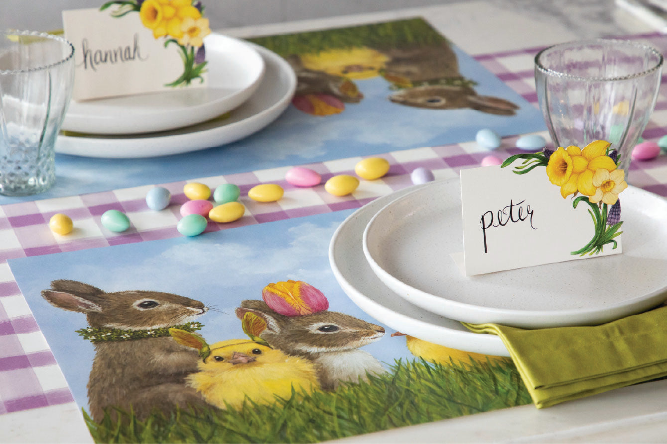 We have grouped our tabletop items together to tell a story and to make it easy for you to pick the theme of your next table setting. Each of our stories will be anchored by our core Hester & Cook paper table goods including Placemats, Table Runners and their corresponding Table Accents, Place Cards and Paper Napkins. We then have added some of our favorite items to help fill out your table and complete the look of your party. We have everything you will need from linen napkins to birthday candles!
