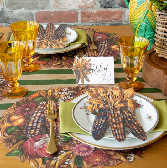 Rich autumn colors abound in this colorful story painted by artist Vicki Sawyer! With golden tones and gorgeous leaves, this assortment is sure to make a bold seasonal statement on your table all autumn long.
