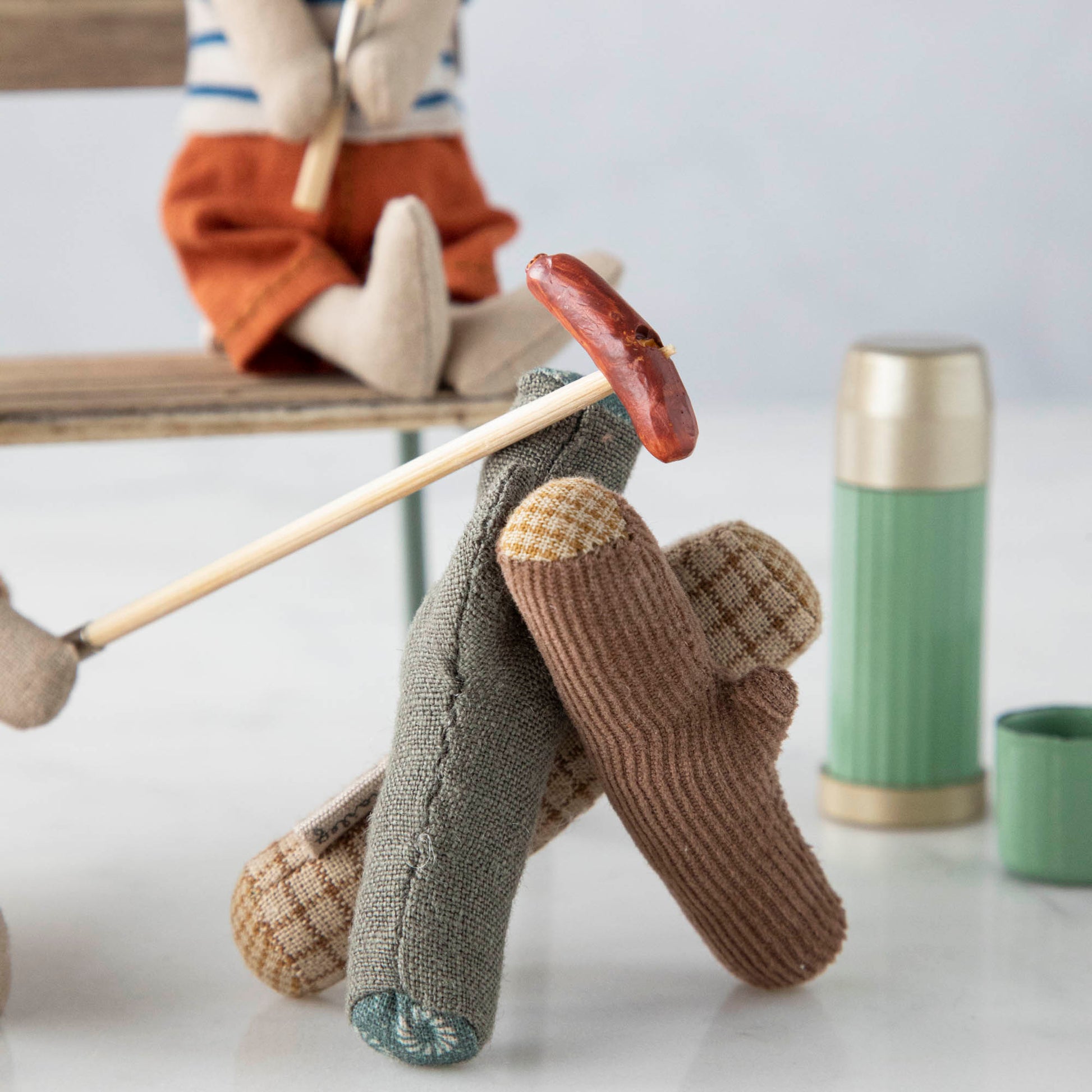 A Maileg Bonfire Set on a stick, perfect for hiker mice.