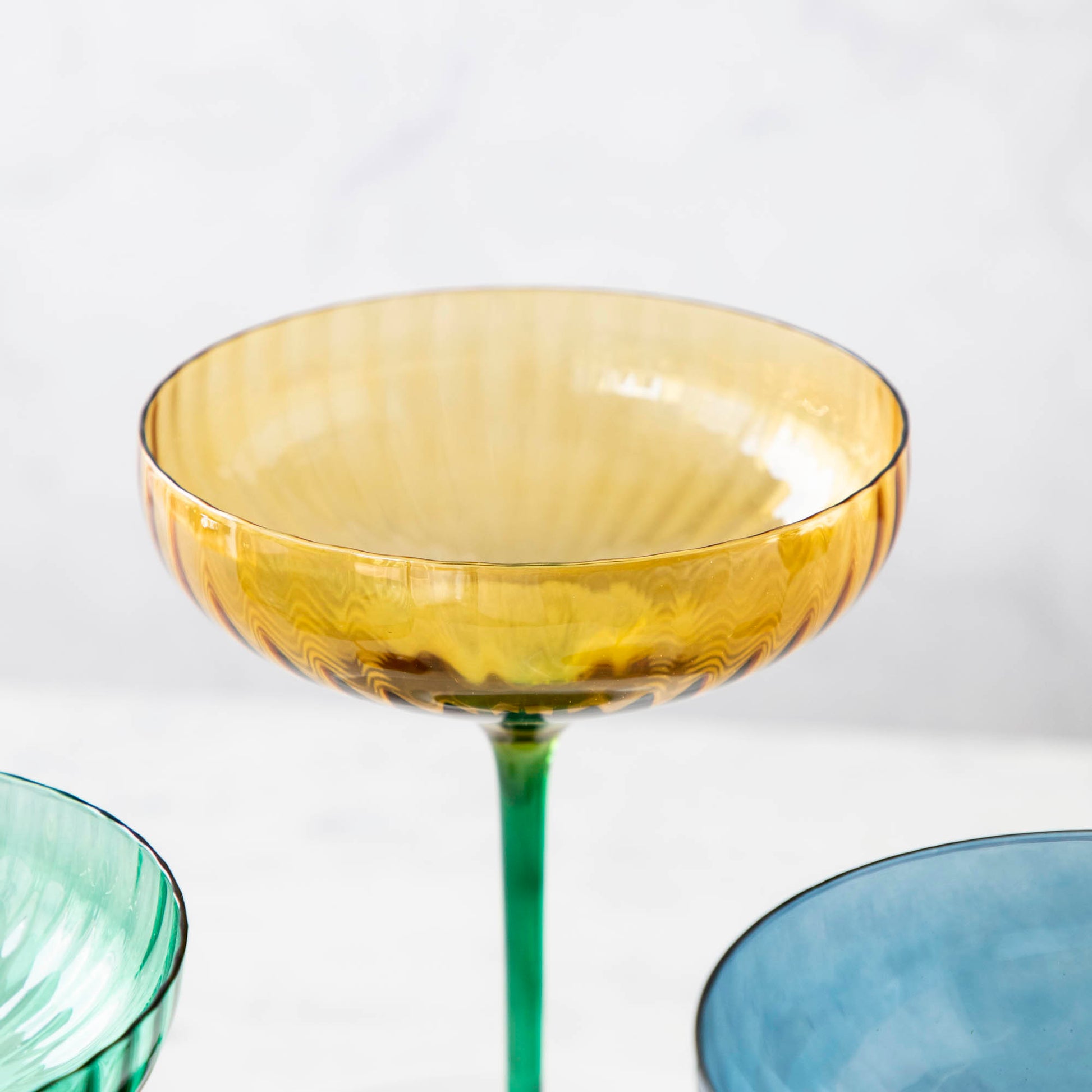 This Festive Coupe Glass is perfect for any special occasion. With its two-tone colors and classic coupe design, it will bring an extra bit of cheer to your gathering. Its festive look is sure to impress your guests and make your celebration even more memorable.  Available in 4 colors.