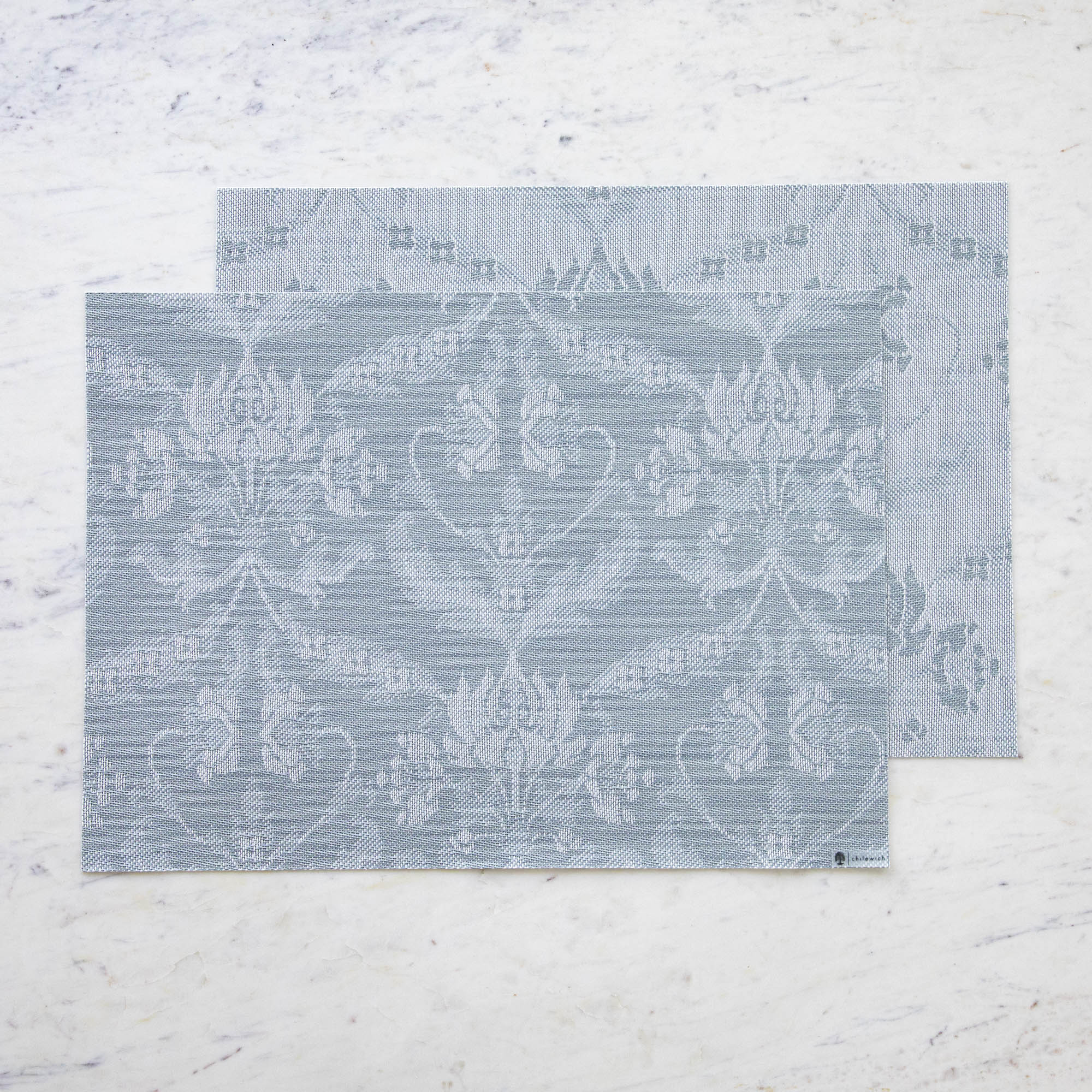 Developed in collaboration with Martha Stewart, Damask is inspired by the art of tapestry. This jacquard weave reimagines the organic symmetry and tone-on-tone elegance of damask textiles, including intertwining flowers and acanthus leaf motifs, in a contemporary color palette. When flipped over, the colors are reversed, offering two distinct looks in each mat.