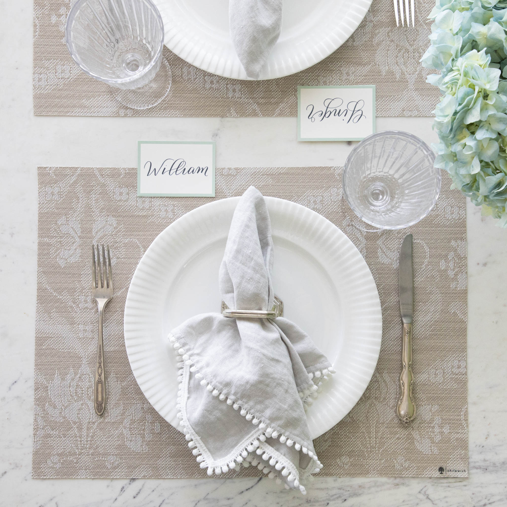 These gorgeous Damask Rectangle Placemats are suitable for both indoor and outdoor use, and come in Martha Stewart's favorite colors!