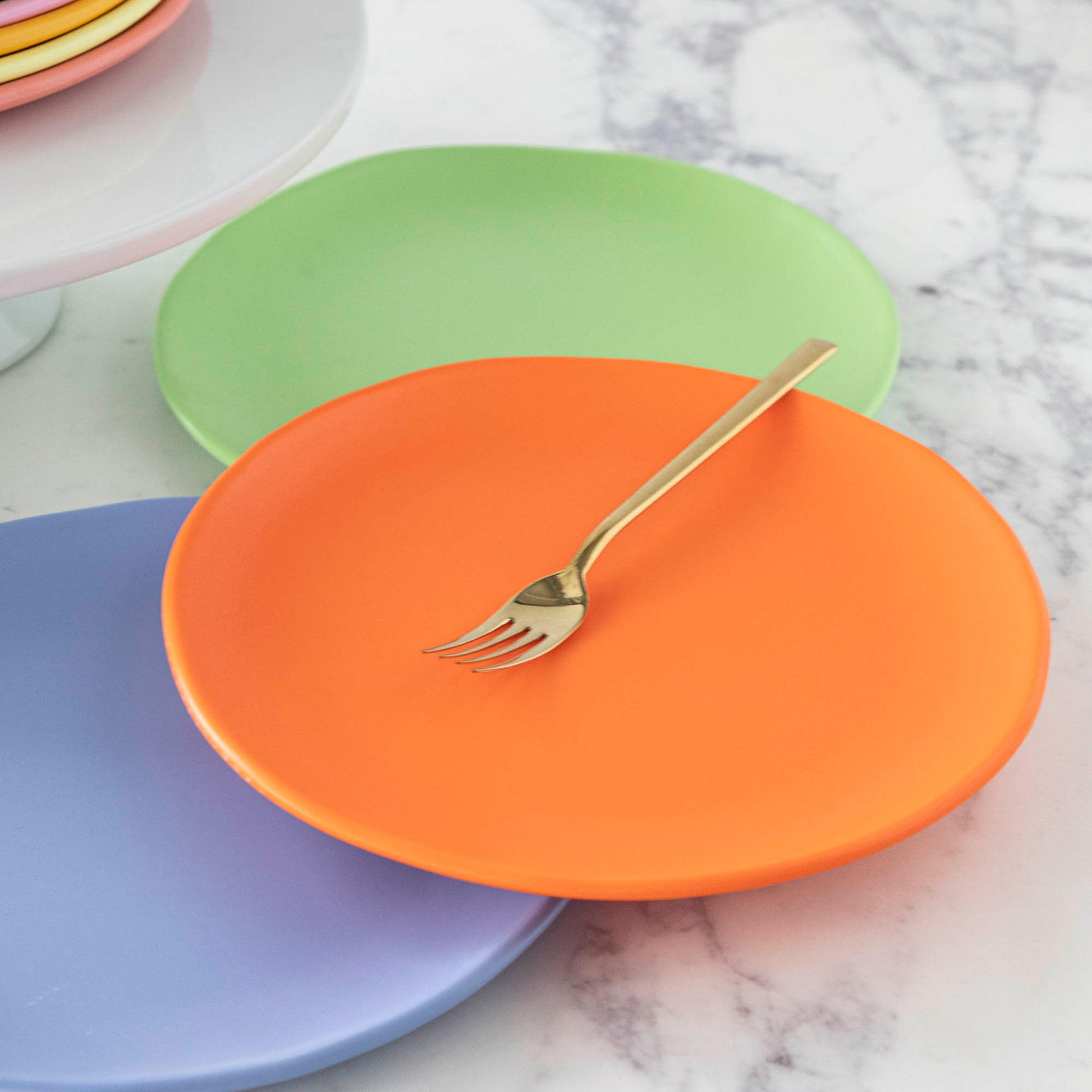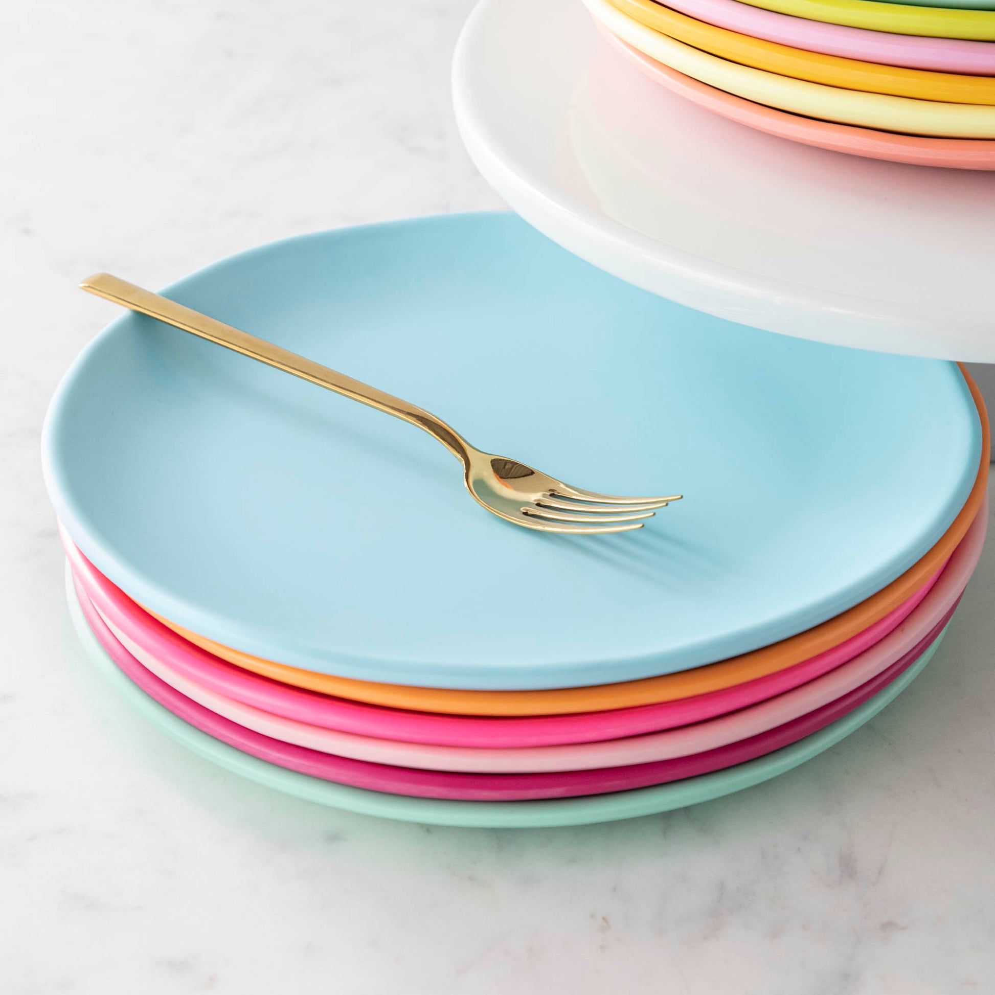 This pastel Rainbow Melamine Plate is sure to brighten up your dinner routine, and can be paired with a matching dessert plate and trinket bowl for a colorful meal. Mix and match the colors to create a dining experience that's anything but boring!