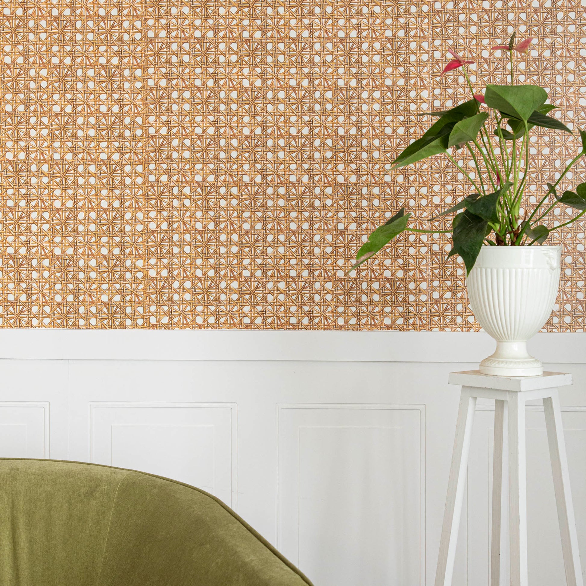 Adorn your space with the classic, vintage charm of our Rattan Weave Wallpaper inspired by caning patterns of the seventies! It can bring a pop of tropical flair or bohemian bliss to any space but we love it in dining rooms, outdoor kitchens, and groovy guestrooms.