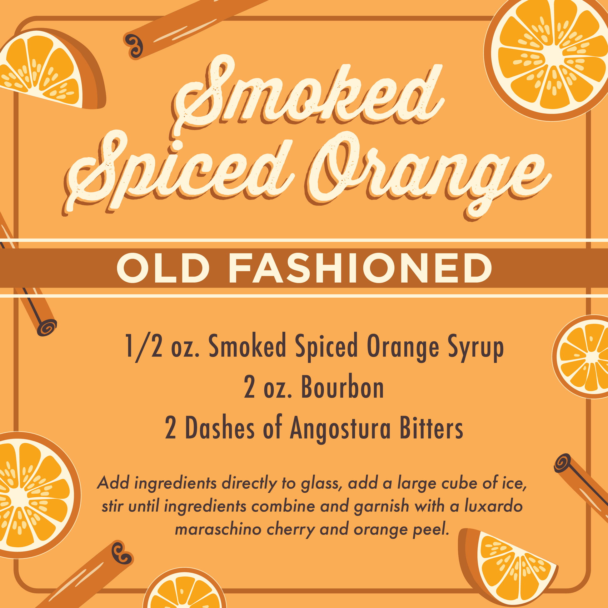 Warm spices and hickory smoked orange peel combine to render this decadent concoction. Our Bang Candy Smoked Spiced Orange Simple Syrup is delightful on a chilly evening with your favorite dark liquor.