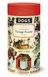 Vintage Dogs Puzzle by Cavallini in a cylinder tube with illustrations of whimsical dogs and a red top.