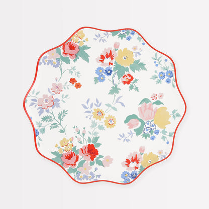 Dainty posy bouquets add effortless elegance to any setting. This classic design is influenced by vintage-style floral pattern trends, which include a touch of red to keep the look modern and fresh. Use these paper side plates, with a wavy edge, for baby showers, bridal showers, afternoon tea, garden parties or wherever you want a sophisticated effect.